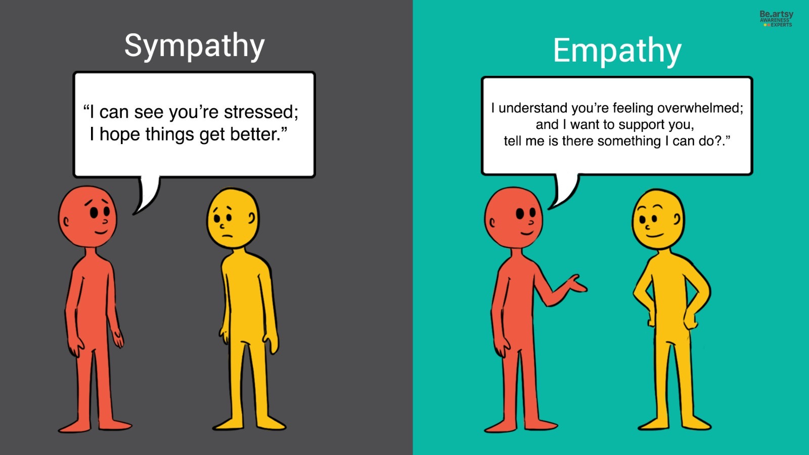Workplace sympathy is watching someone's struggle from afar, while empathy means standing beside them, acknowledging their emotions, and offering support when possible.
