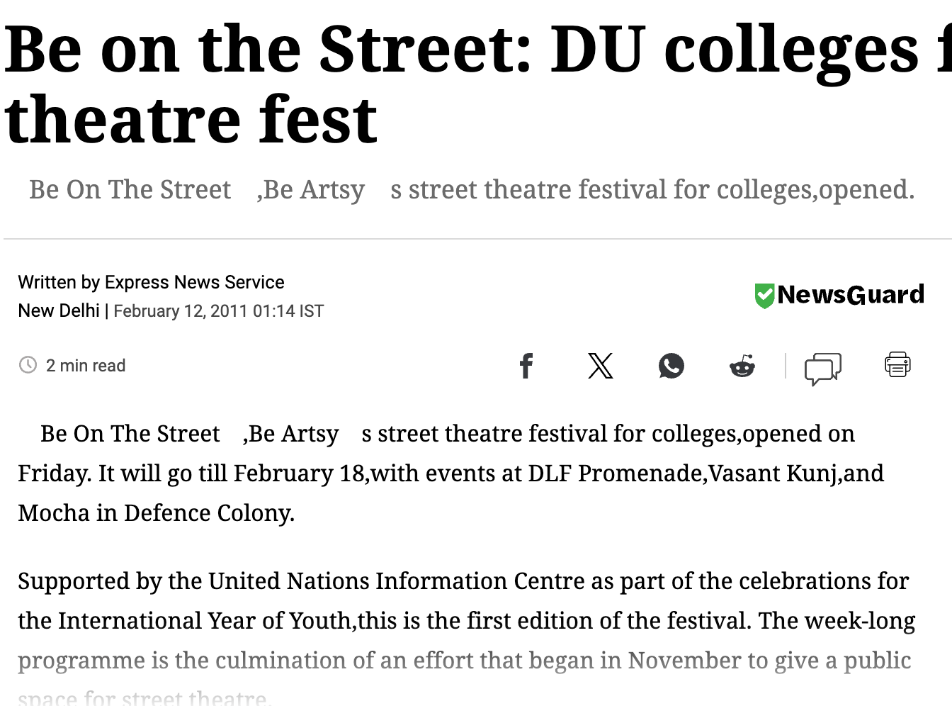 The United Nations Information Centre (India and Bhutan) has supported Be On The Street for all eight previous seasons, recognising its unique impact. This annual youth festival, invites college teams nationwide to create and perform street theatre around the United Nations Sustainable Development Goals.