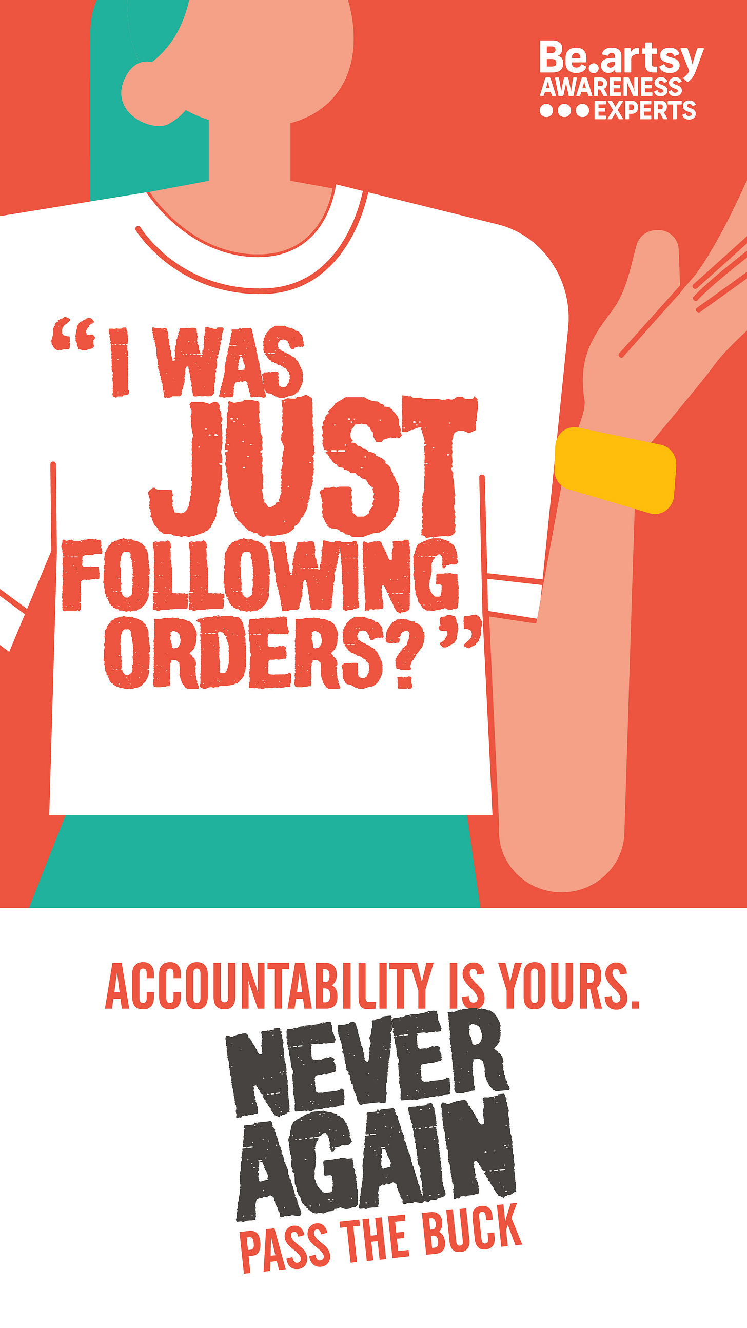 Use visual symbols (like powerful posters, icons) that reinforce key messages. Sharing a sample of Poster from one of the Be.artsy campaigns - “Never Again”