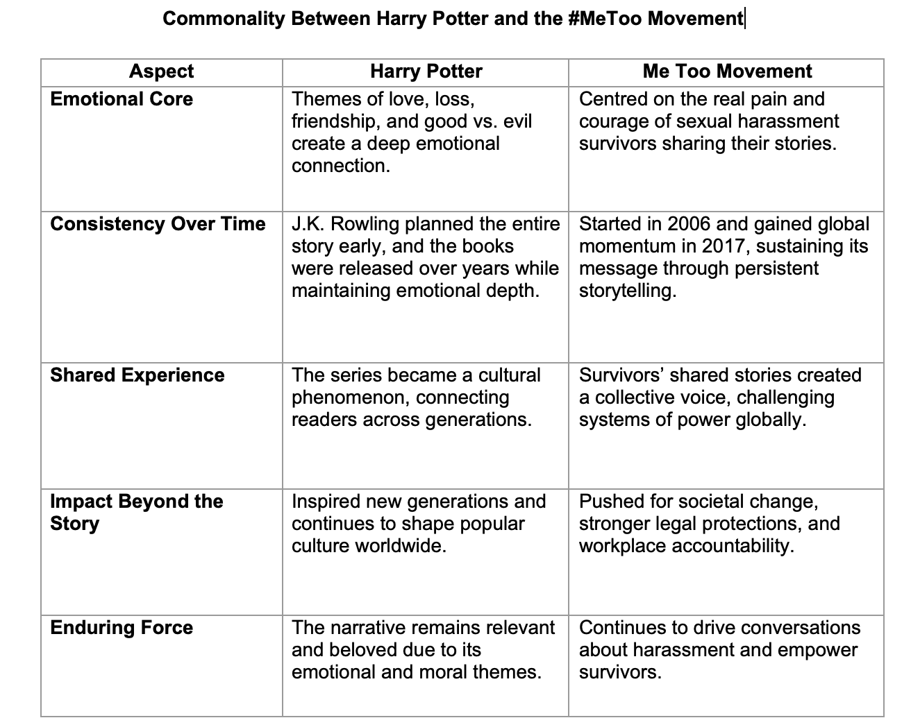 Both Harry Potter and the Me Too movement show that emotionally compelling narratives—when sustained with consistency—become more than just stories or campaigns. They evolve into enduring forces that shape culture and drive meaningful change.